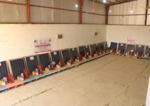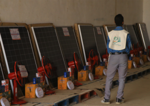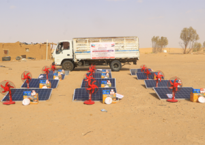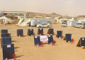 قامت جمعية المرأة للتنمية بتنفيذ مشروع توزيع منضومات شمسية مع المراوح لعدد 13 أسرة نازحة منقطعين عن الكهرباء في مخيم الوضيح الذي يعاني من انقطاع الكهرباء.